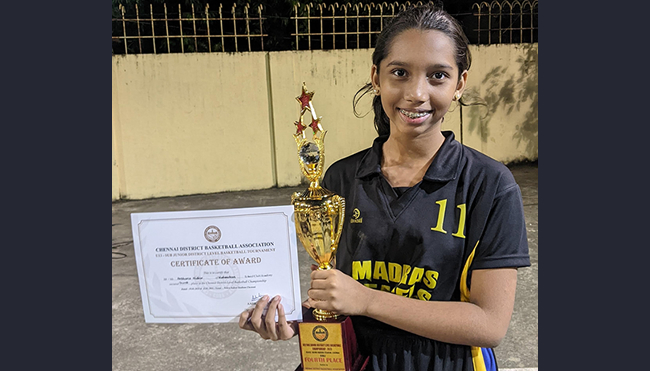 Akshara Nidhin of grade VII participated in the Under-13 Sub Junior District Level Basketball tournament conducted by Chennai District Basketball Association and her team secured the 4th place.