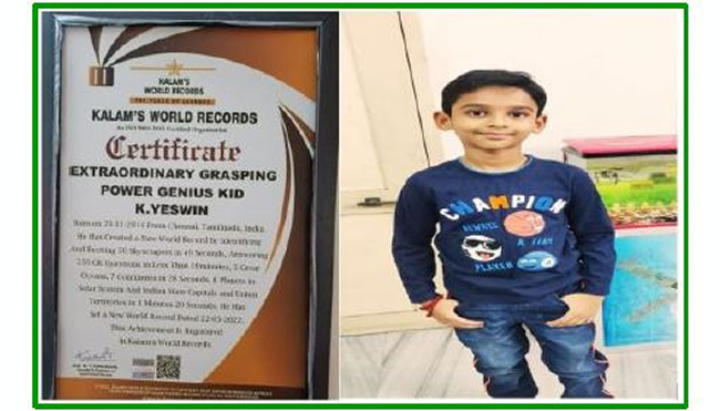 K Yeswin of grade III achieved an award recognized by Kalam Book of Records. Sanansha Deepak studying in PPII has received Kalam’s World records for creating a National flag by using her palm print to commemorate the occasion of the 75th Independence Day.