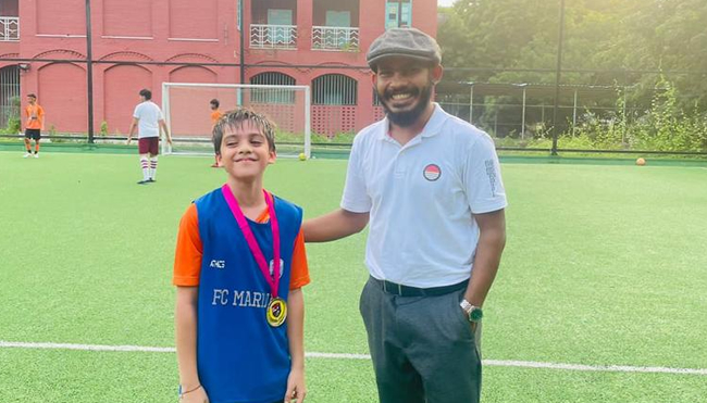 Teerth Kothari R from grade IV has been awarded the best player of the month by his football academy FCMarina for the month of August.